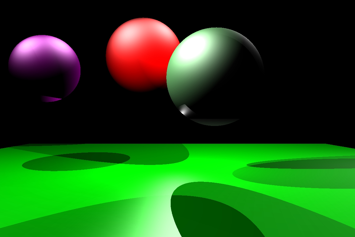 where p is the point of intersection, norm is the normal, diffuse is the diffuse color of the scene object, specular is the specular color (color of your highlights) and power is the phong power exponent (10-10000). The following, are 4 of the more than 30 image renditions I obtained in the process of trying to obtain an optimal image with a functional Ray Tracer: