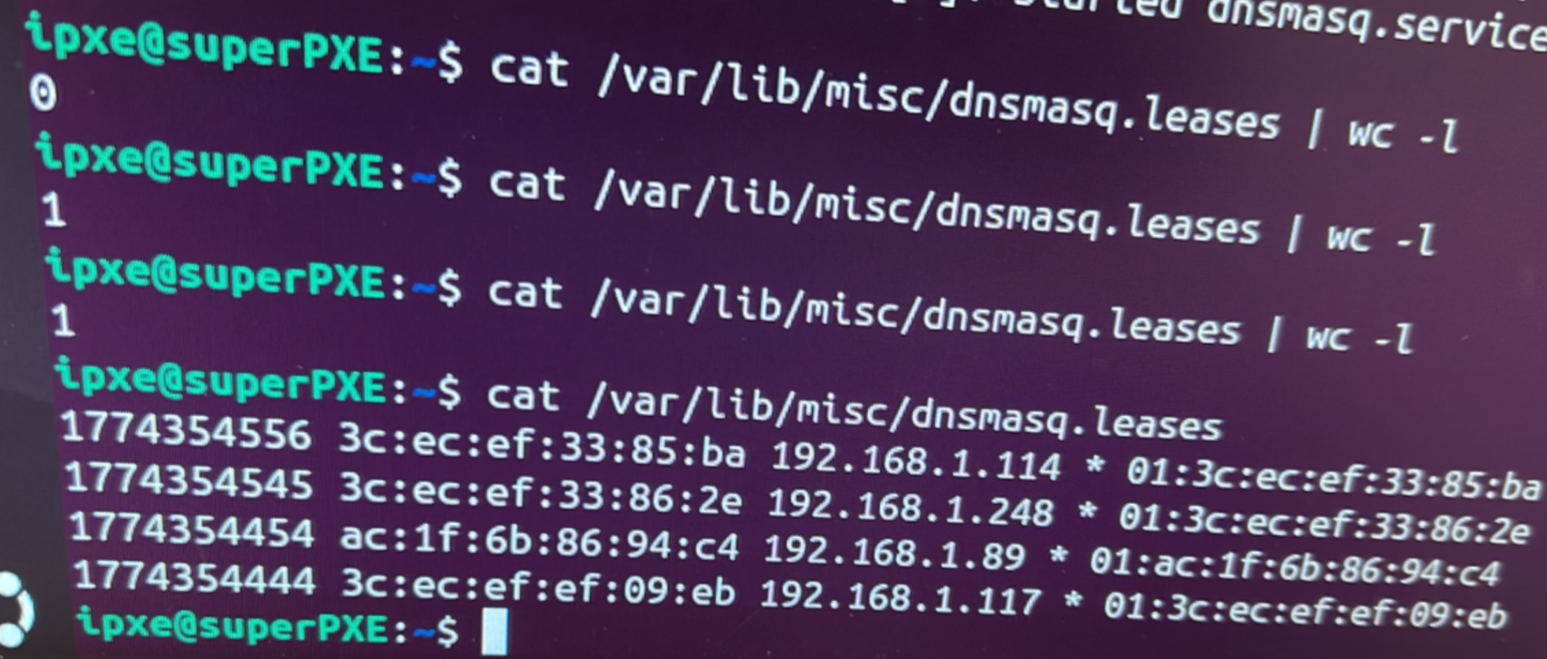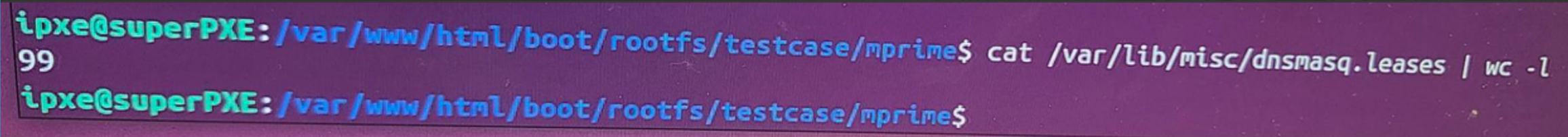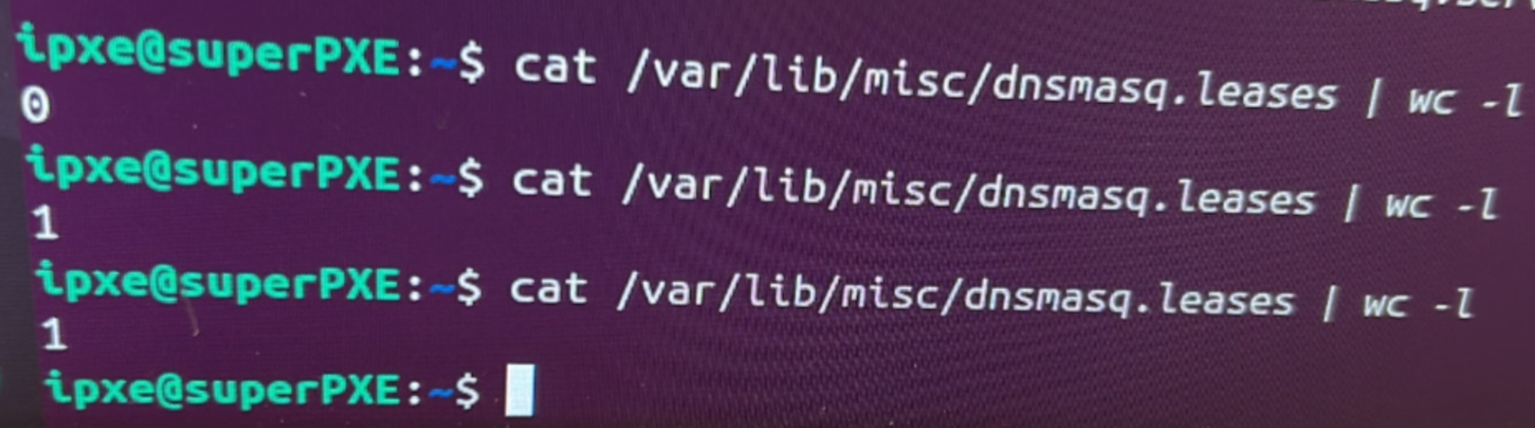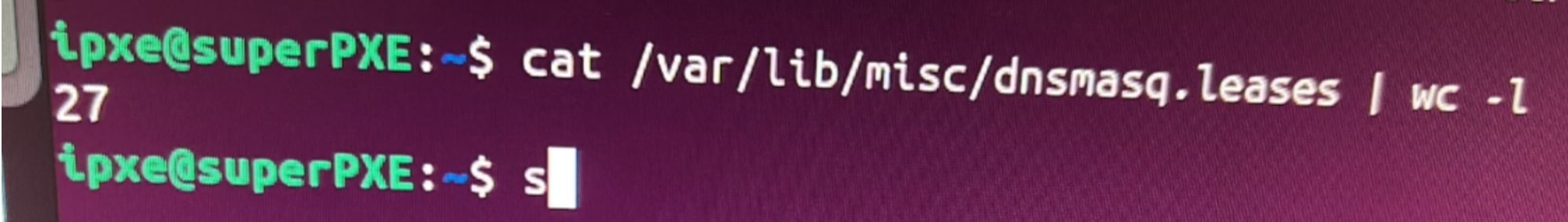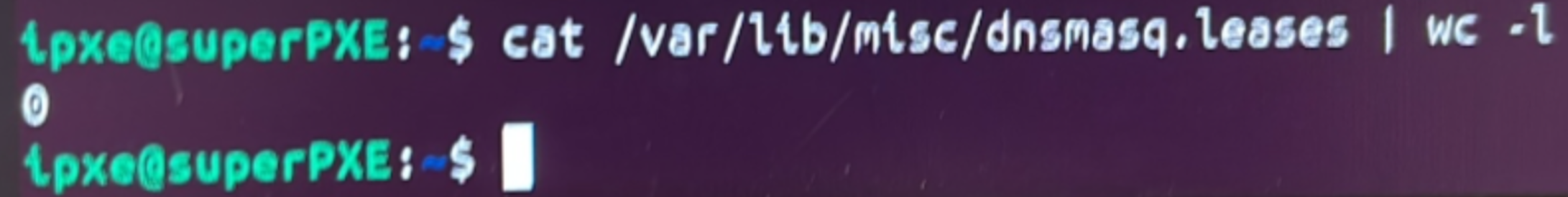 To start, we see that PXE server in its previous network configuration, had already given 27 IPs: