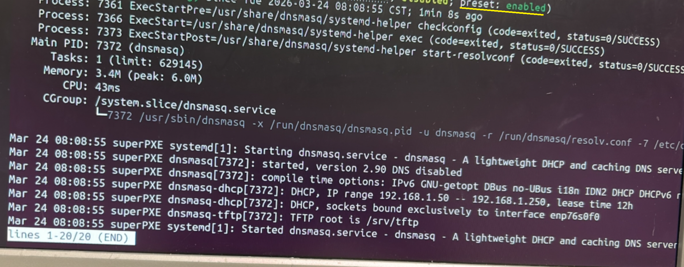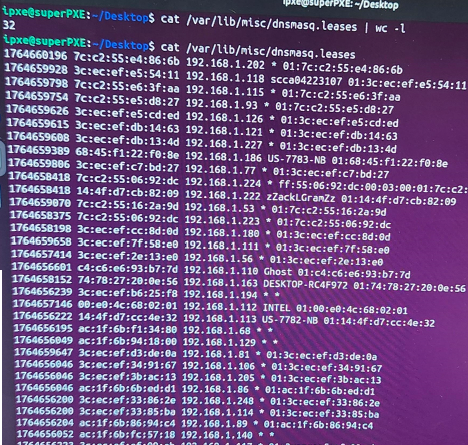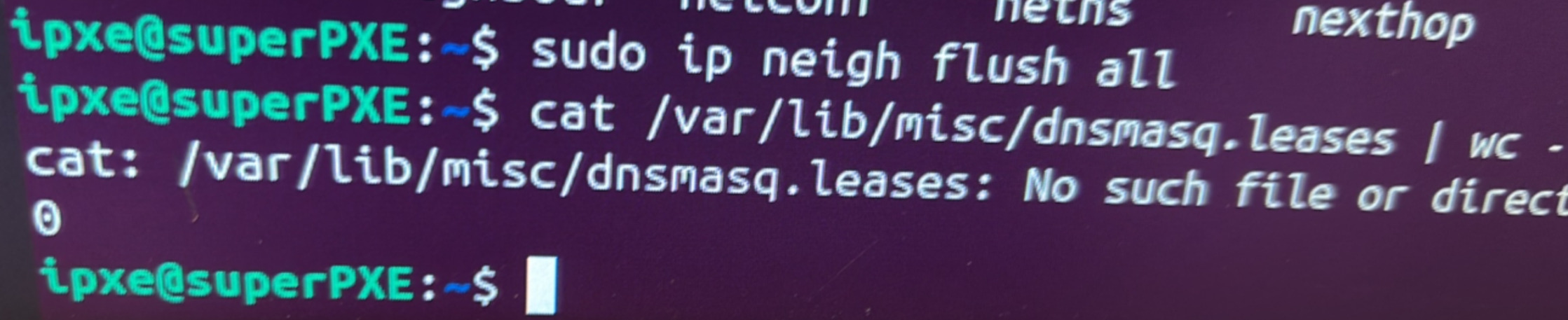 To start, we see that PXE server in its previous network configuration, had already given 27 IPs: