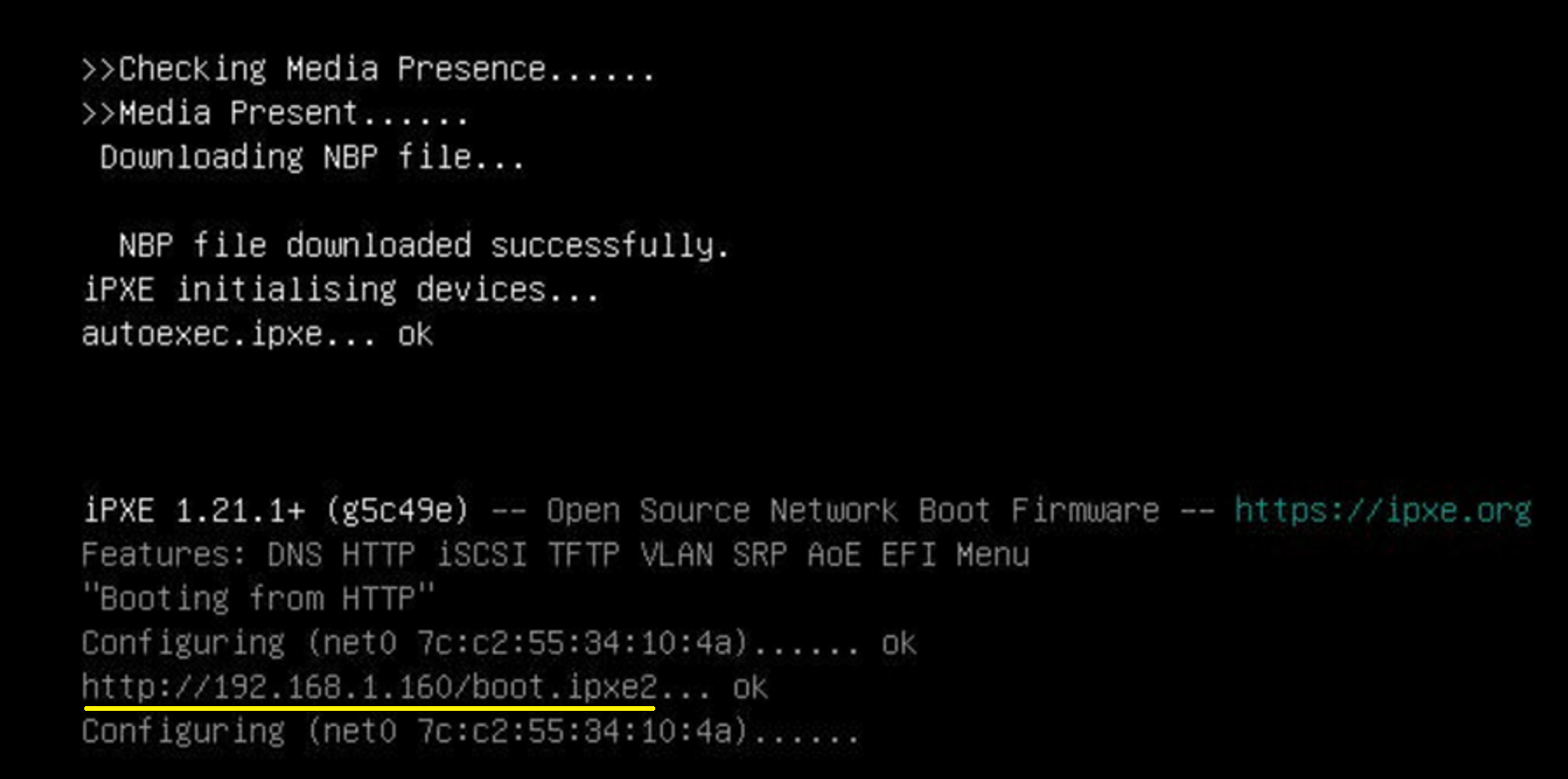 - Give the PXE server a new static IP (approved by Intel): 192.168.1.160