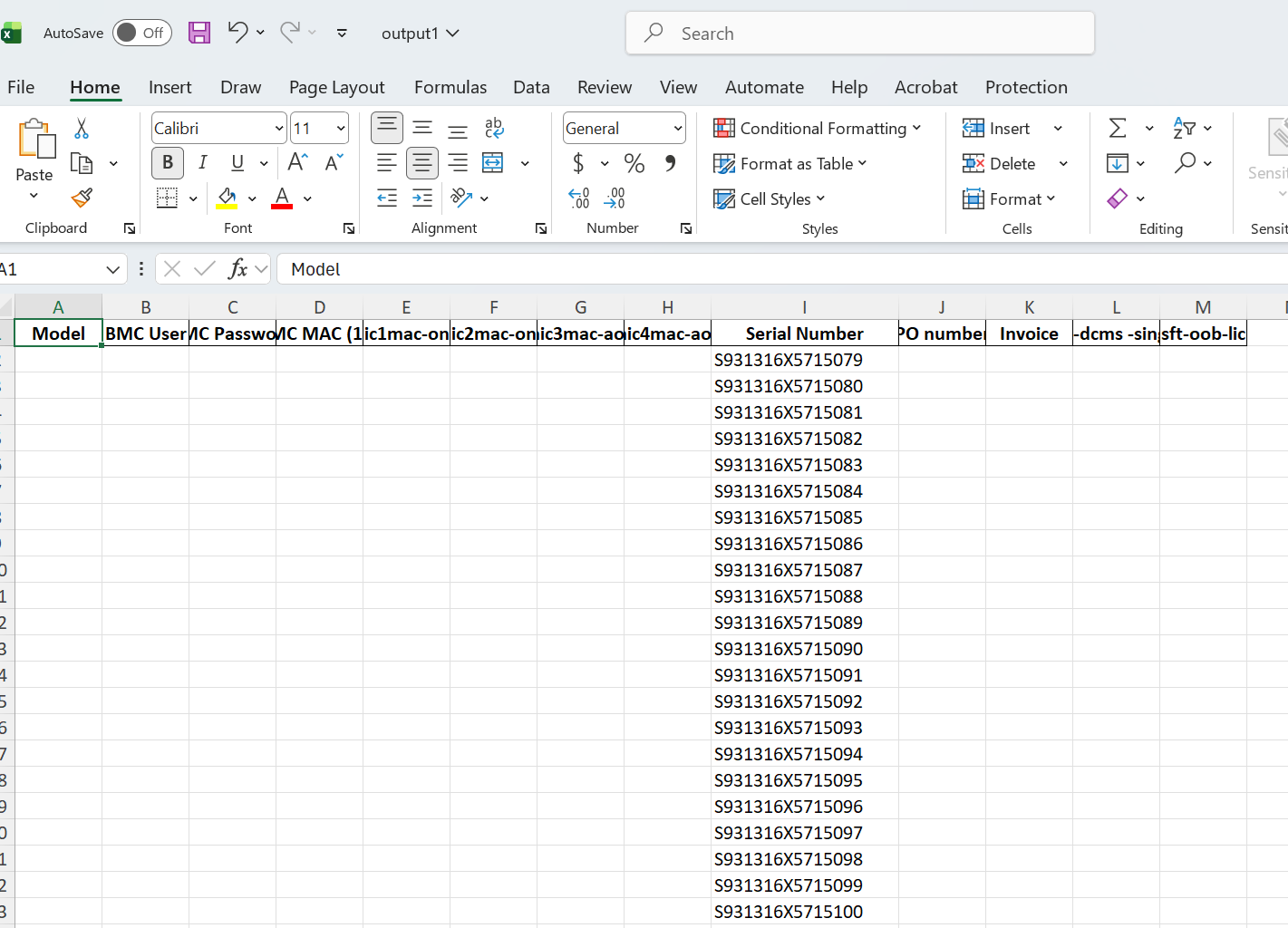 Output1.xlsx after running the second script, make_serial_list2.py: