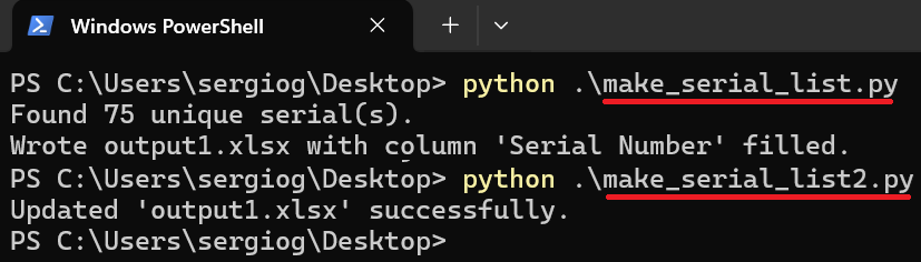 3- The first script cleans that serial column, removes blanks, and extracts unique serial numbers while keeping their original order.